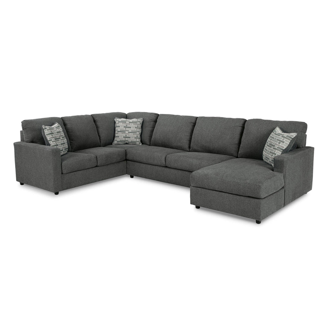 The Elanville Chaise Lounge in charcoal is modern and streamlined. Relax and settle into the calm of your own curated space with this neutral contemporary suite.